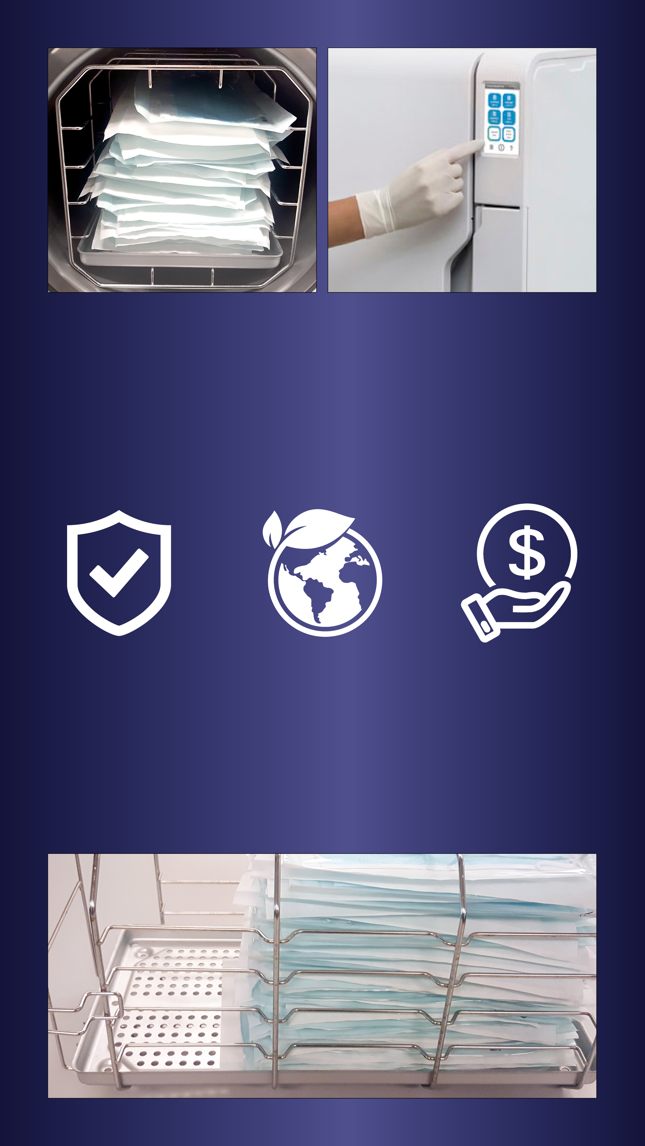 With optimal loading in a W&H Sterilizer, approx. 40 to 60 masks can be reprocessed per one sterilization cycle (depending on masks, on their size and loading scheme). For reprocessing and the safe reuse or extended use protective masks, please always refer to the manufacturer’s instructions for use as the principle sources of information and recommendations.