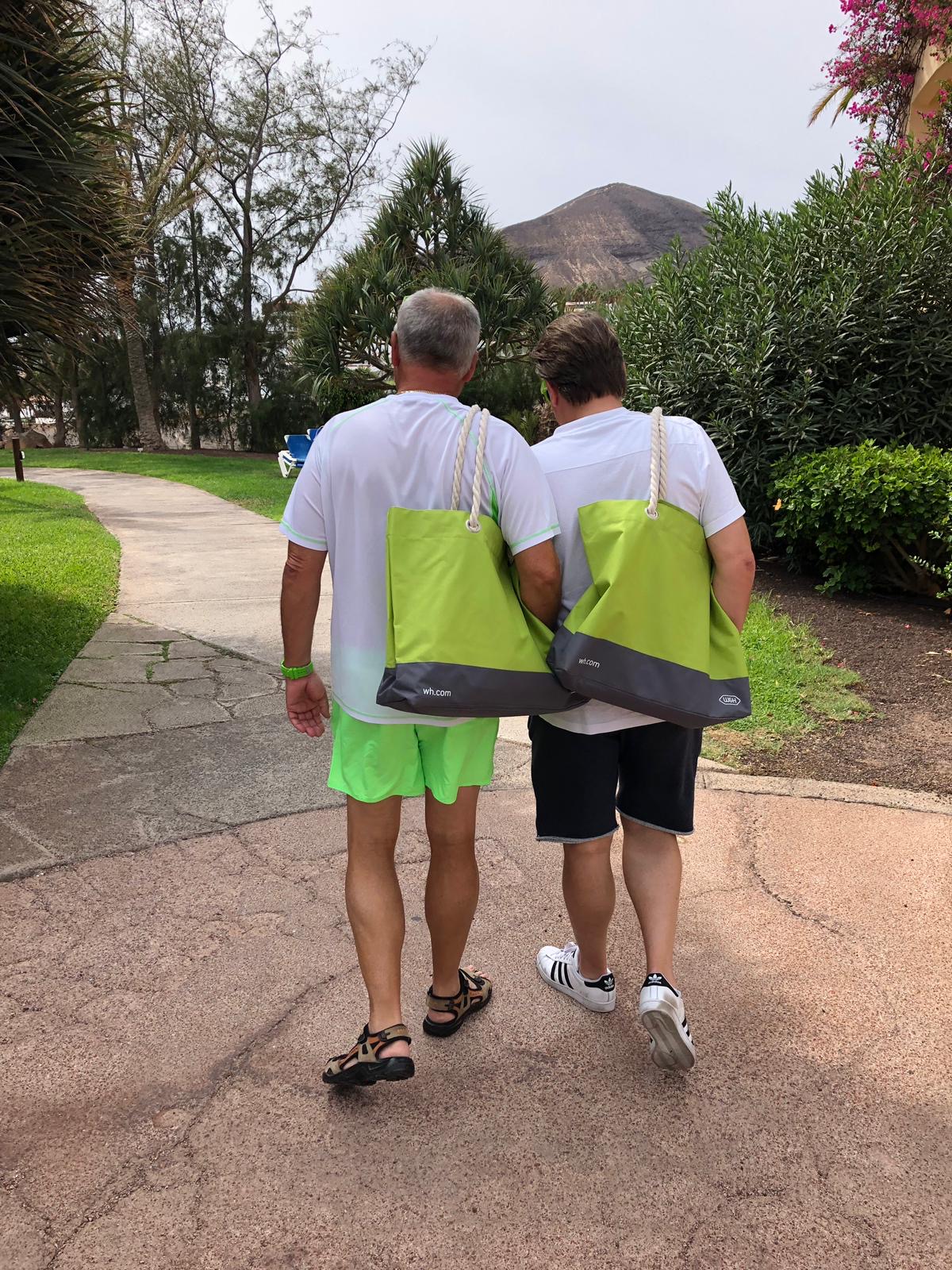 In Fuerte angekommen stelle ich fest, dass mein Katamaran auch schon da ist. Eine wirklich tolle Orga ist das hier, da kann KURZ nicht meckern. Schnell kommt folglich die Frage auf, ob wir hier einen Segelkurs machen oder einen Knochenjob-Workshop? Die Bilder werden es verraten. Andreas (links im Bild) und ich sind im Gegensatz zu den Turbinen-Zwillis nicht zum Urlauben hier, daher gehen wir erst einmal in die Pyramide arbeiten.