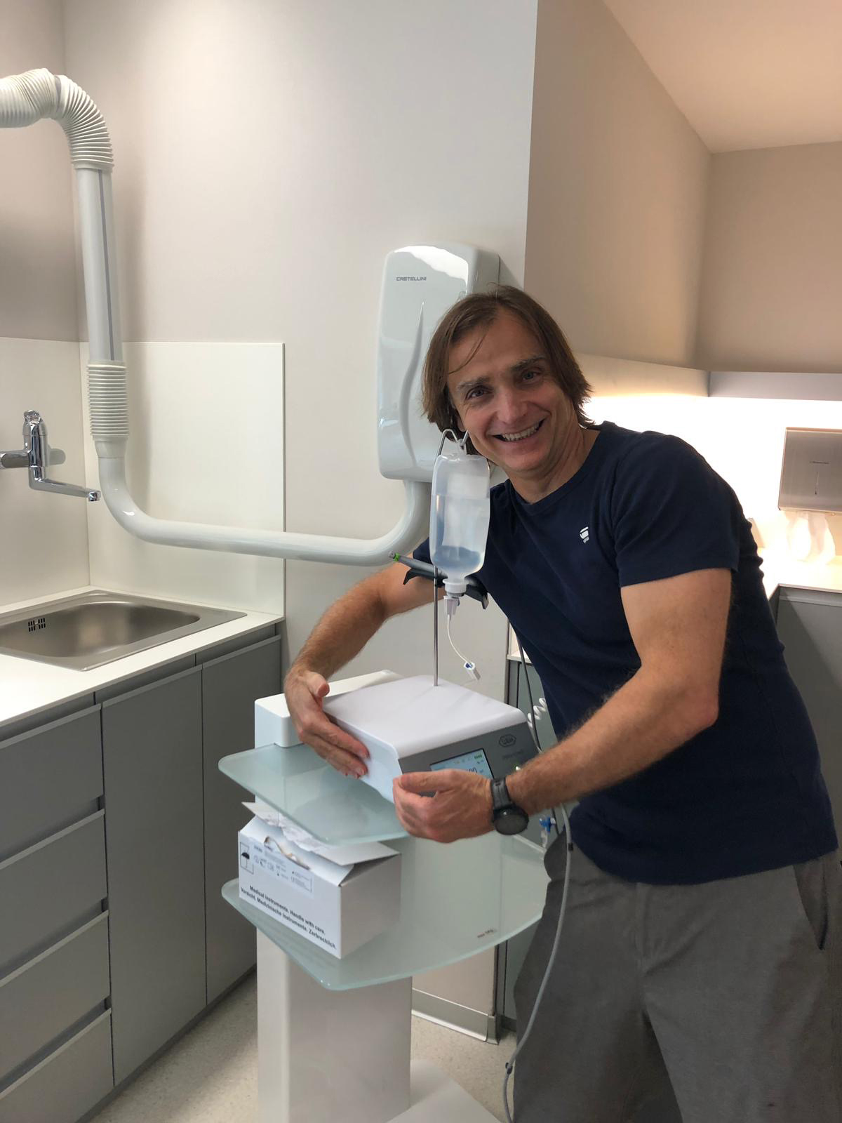Tatort München, bei Claudio Cacaci, ein lieber und langjähriger Wegbegleiter. (siehe auch Beitrag "Ein Pilotbohrer"). Auf die nächsten 15.000 Implantate ohne Ausfall mit W&H!