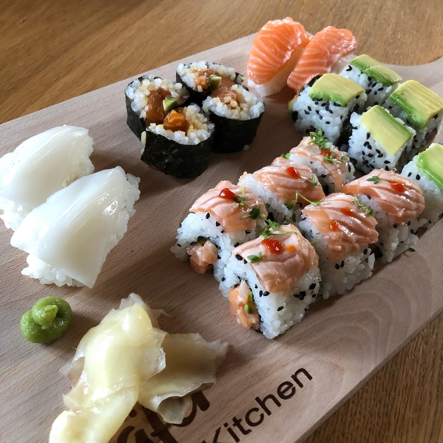 Nämlich köstliches Sushi. Der aufmerksame Leser weiß, wie sehr mir die kleine japanische Reisrolle am Herzen liegt. Der aufmerksame Leser weiß auch, dass die Gastro allgegenwärtig geschlossen war / ist / reduziert arbeitet / nur Take-away anbietet / nur liefert / oder was auch immer. Corona machte mir also auch beim Besuch des Lieblings-Sushi-Ladens einen Strich durch die Rechnung, sodass ich erfinderisch werden musste. Das macht Not ja bekanntermaßen.