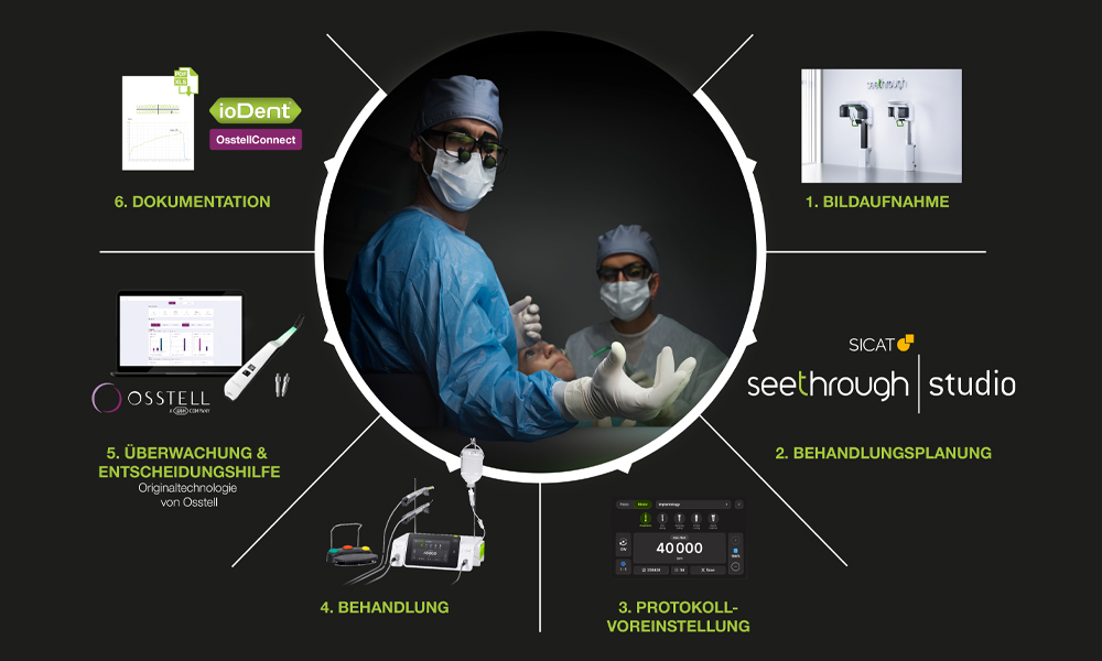 Der W&H-Oralchirurgie-Kompass dient als praxisnaher Wegweiser durch die einzelnen Behandlungsschritte in der Oralchirurgie und Implantologie – von der Diagnose über die Behandlung bis zur abschließenden Dokumentation. Er verdeutlicht, wie jedes W&H-Gerät seinen Platz im Behandlungsprozess findet und wie die Medizinprodukte miteinander harmonieren.