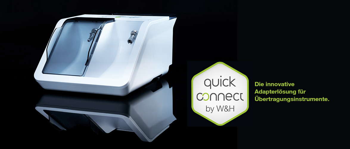 Dank integriertem Quick Connect by W&H fügt sich die Assistina Twin noch besser in Ihre Arbeitsabläufe ein und gestaltet diese noch effizienter. Warum? Weil Sie das Pflegegerät mit genau den Adaptern ausstatten können, die Sie für Ihre Übertragungsinstrumenten benötigen.
