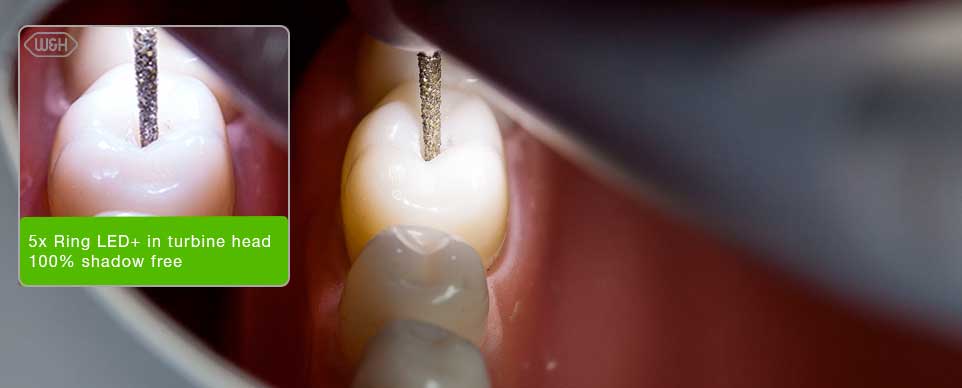 The world՚s first sterilizable turbines with 5-fold Ring LED+ stand for maximum precision and reliability. With optimised light and visibility conditions, they assist in the treatment of cavities – for reliable diagnosis and excellent preparation results – day after day.