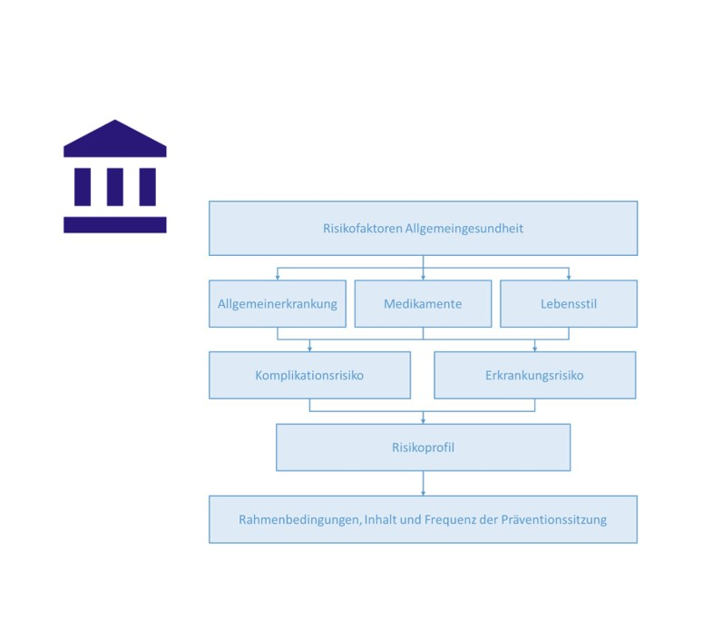 To ensure that patients can be given safe and effective preventative treatment, it is essential to carry out an adequate risk classification, and to deduce the corresponding clinical consequences for each phase of a prevention session. The classification system presented in this article provides a way to systematically incorporate general diseases, medications and lifestyle habits into structured preventative dentistry. By using an individually tailored, risk-orientated prevention approach, treatment safety can be increased, and long-term treatment success can be ensured.