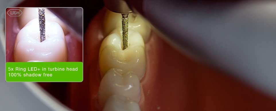 The world՚s first sterilizable turbines with 5-fold Ring LED+ stand for maximum precision and reliability. With optimised light and visibility conditions, they assist in the treatment of cavities – for reliable diagnosis and excellent preparation results – day after day.