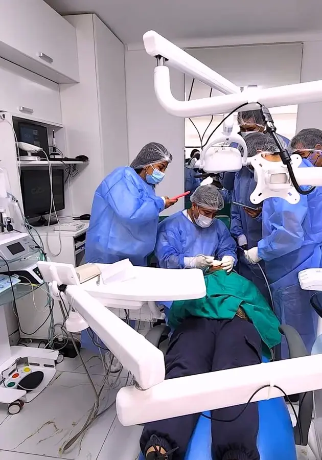 El experto peruano dirige una intervención sobre paciente utilizando un sistema de cirugía piezoeléctrica.