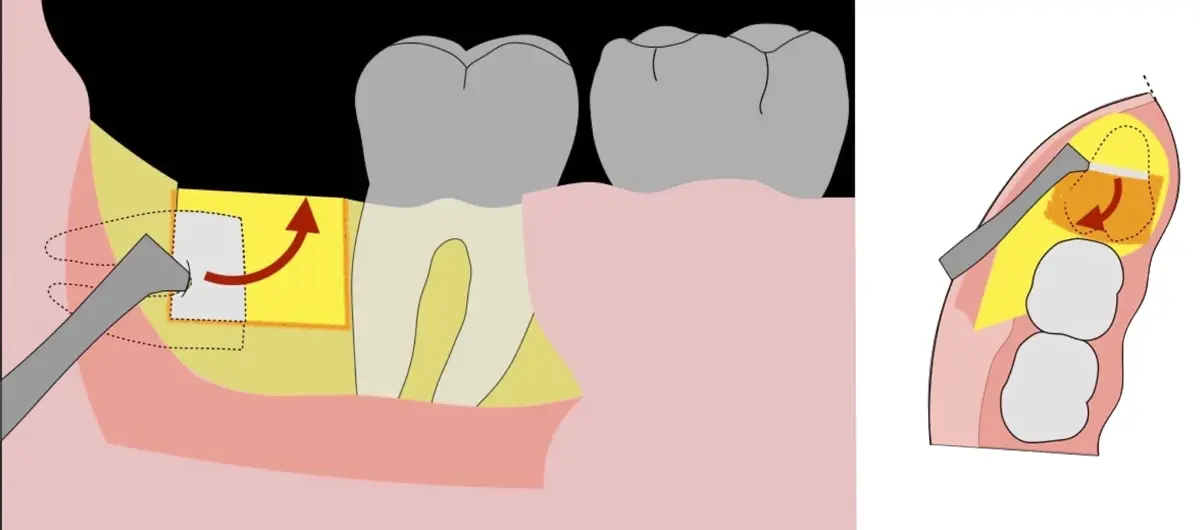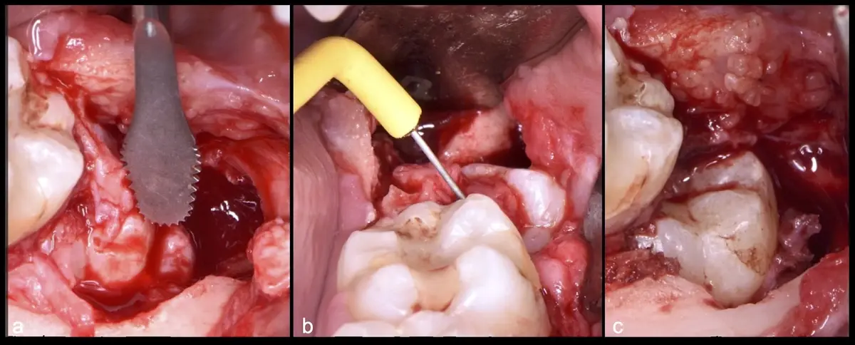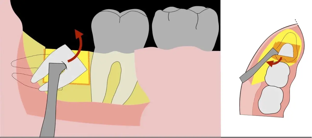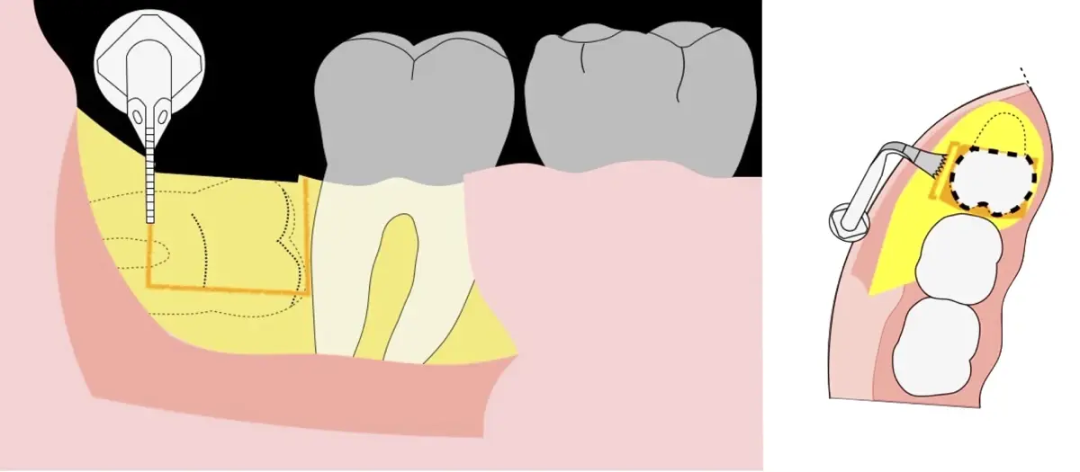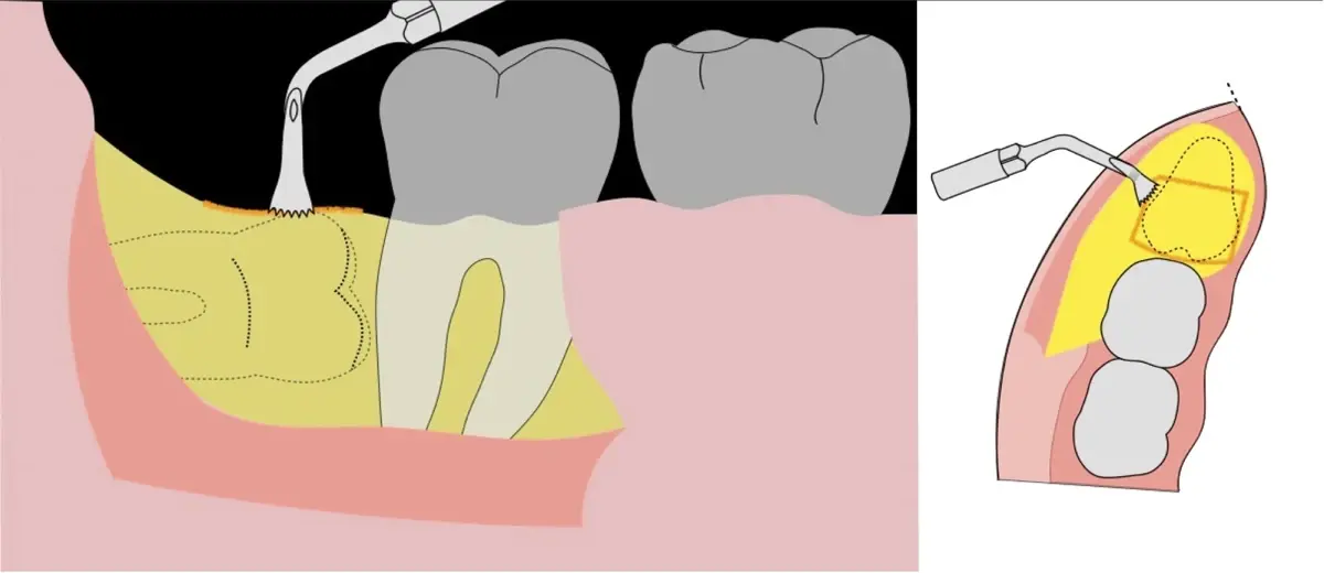 El procedimiento puede variar en su complejidad dependiendo de su ubicación, profundidad, angulación, y la densidad ósea circundante.2 Uno de los pasos más críticos y cruciales en la extracción es la osteotomía previa y concomitante al acceso quirúrgico del diente, para lo cual se utilizan diversos instrumentos como cinceles y martillos, instrumental rotatorio o de corte por ultrasonido.3