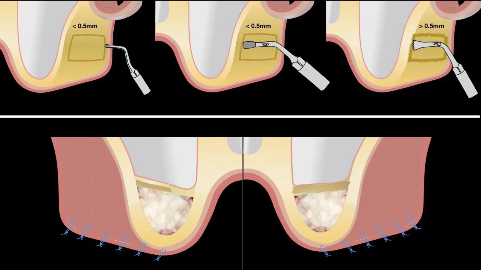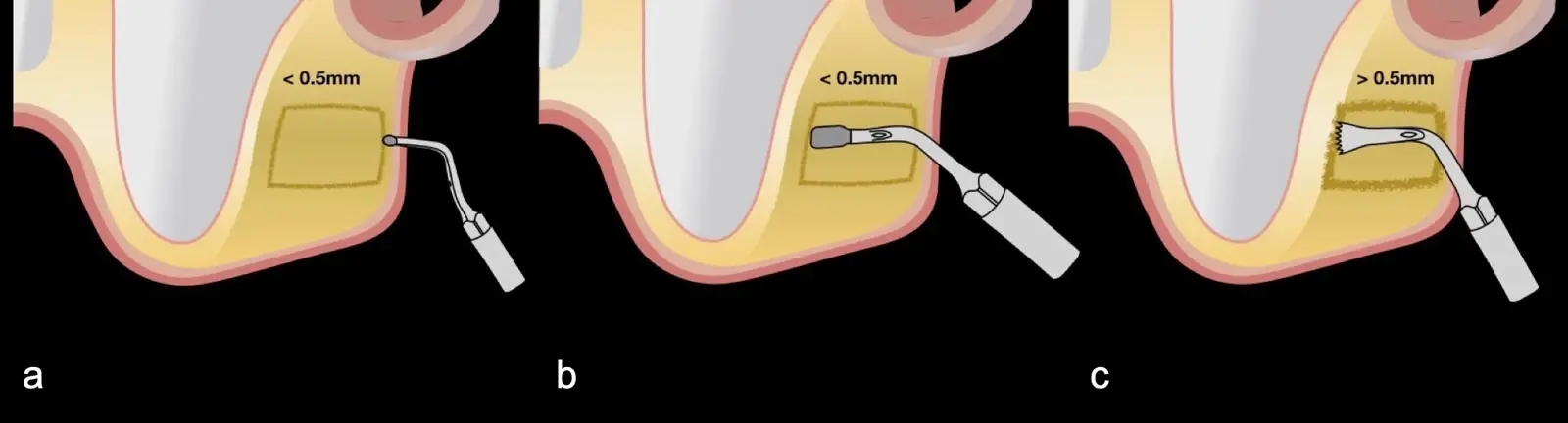La falta de sensibilidad táctil que posee el operador al utilizar las fresas puede jugar en contra al momento de determinar la profundidad de corte y, por lo tanto, aumenta la posibilidad de generar lesiones iatrogénicas, que pueden hacer que el hueso se sobrecaliente, provocando muerte tisular.9