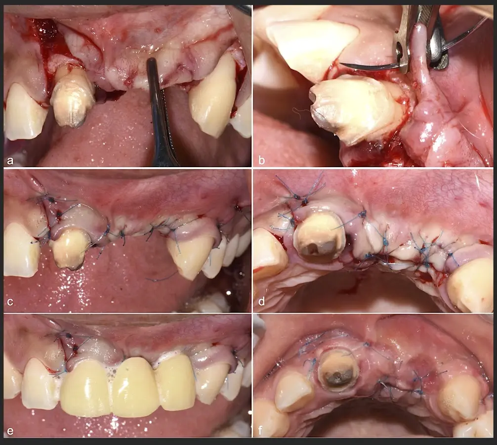 Figura 22. Liberación de colgajo y prueba de elasticidad del tejido blando (a) para un adecuado cierre sin tensiones y cicatrización por primera intención (b).