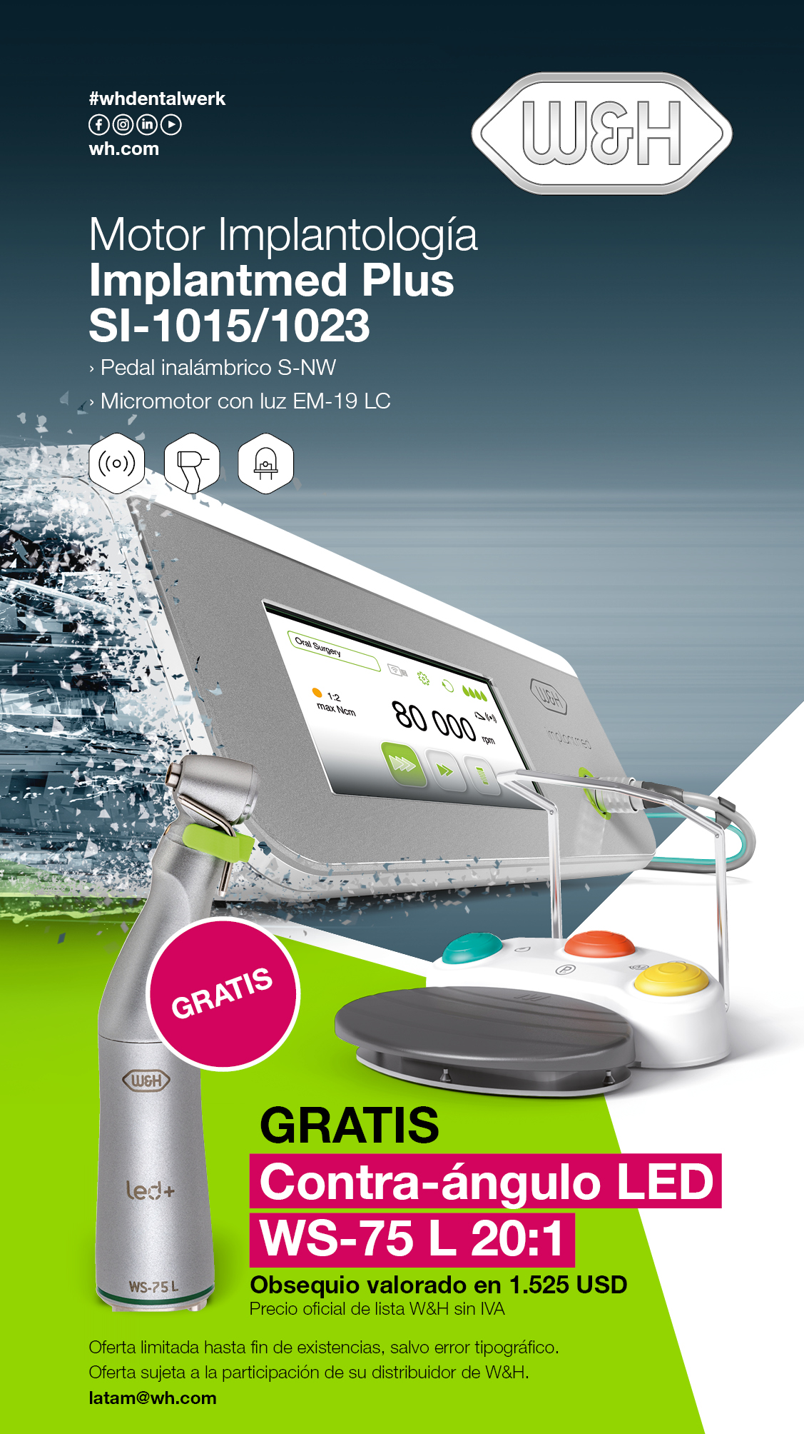 Oferta #06 Implantmed Plus + GRATIS contra-ángulo LED WS-75 L