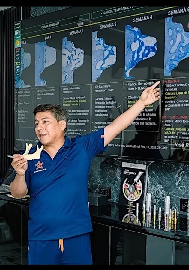 José Rosas Díaz, autor del libro "Cirugía piezoeléctrica. Generalidades y aplicaciones clínicas", explica durante una conferencia la importancia de conocer la nueva clasificación de la biología ósea para obtener el mayor beneficio de la tecnología piezoeléctrica.