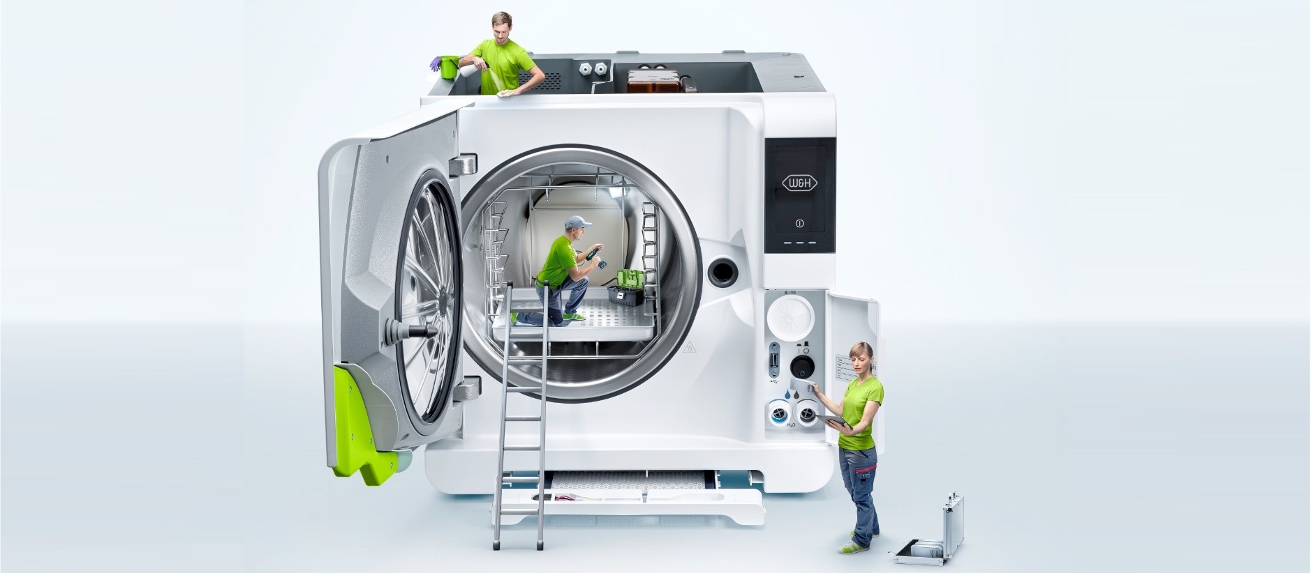 El creador del producto es quien mejor conoce su funcionamiento. Y es, por tanto, quien establece estándares de calidad profesionales para que pueden mantenerse a largo plazo. Después de 130 años trabajando en tecnología dental conocemos todos los requisitos de los usuarios y las necesidades de los pacientes. Esto es lo que distingue a W&H ProService. Nuestros técnicos de servicio son auténticos profesionales. Profesionales que saben más que nadie sobre los productos W&H.