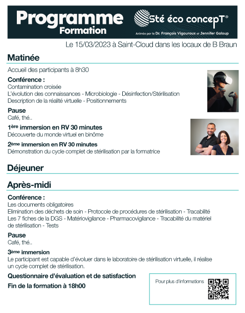 Cette formation en accord avec les normes et réglementations actuelles a pour objectif de permettre aux chirurgiens dentistes et à leurs assistantes d’acquérir les connaissances pratiques et rapidement applicables leur permettant d’améliorer la chaîne de stérilisation de leur propre cabinet.
