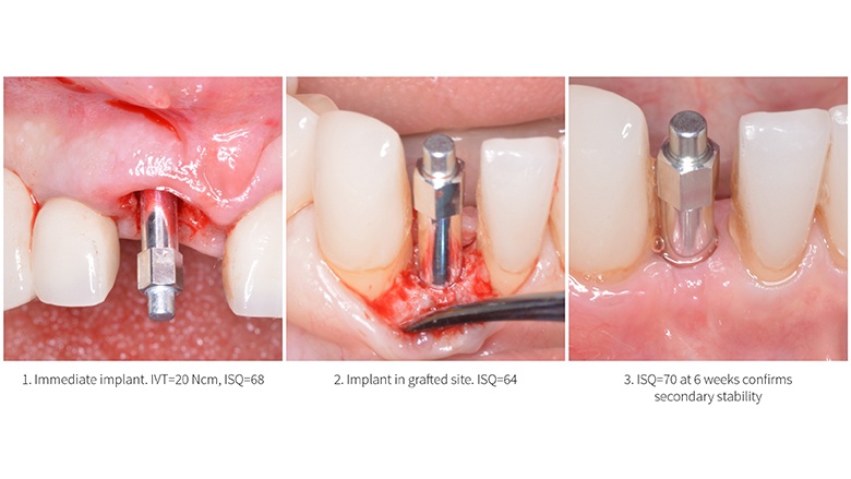 Les recommandations parfois formulées selon lesquelles des ITV arbitraires sont nécessaires pour temporiser ou mettre en charge des implants mis en place immédiatement sont très minoritaires dans les publications scientifiques. Norton a découvert que des implants posés avec des valeurs de couple d’insertion bien en deçà de certaines de ces valeurs recommandées, pouvaient recevoir des couronnes temporaires, sans contact occlusal, lors de l’intervention. D'après d'autres études, des ITV autour de 20 Ncm ne sont pas corrélées aux valeurs ISQ et un grand nombre de patients recevant des provisoires immédiats ne bénéficierait pas de cette option, mais de restaurations temporaires amovibles ou adhésives. L’avantage d’utiliser l’ISQ comme principal indicateur de la stabilité est qu’il est répétable. Quand le praticien opte pour une temporisation, l’implant peut être évalué à divers stades après l’opération afin de déterminer à quel moment on atteint la « stabilité secondaire », ou ostéo-intégration, et on peut poser les couronnes définitives.