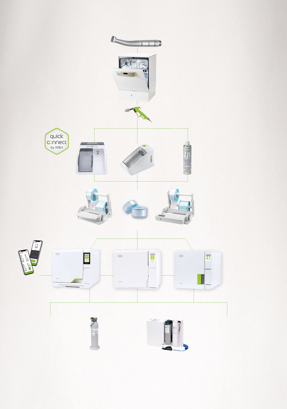 Lisa, Lisa 300 ve 500 ve Lina otoklavlar bir bağlantı parçasıyla (SAT/Water-Supply-Kit)